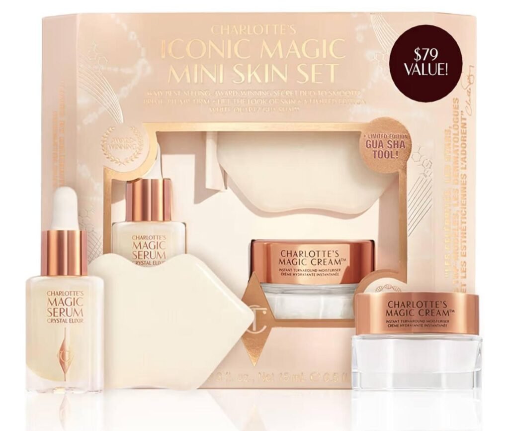 The Charlotte Tilbury Iconic Magic Mini Skin Care Set is available for about $32 at Amazon. This travel-friendly collection includes mini versions of the brand’s bestselling Magic Serum and Cream, plus a limited edition gua sha tool to help boost hydration and promote a youthful-looking glow while on the go or at home. It’s a perfect pick for gift-giving, travel, or testing out luxury skincare at a lower price point.
