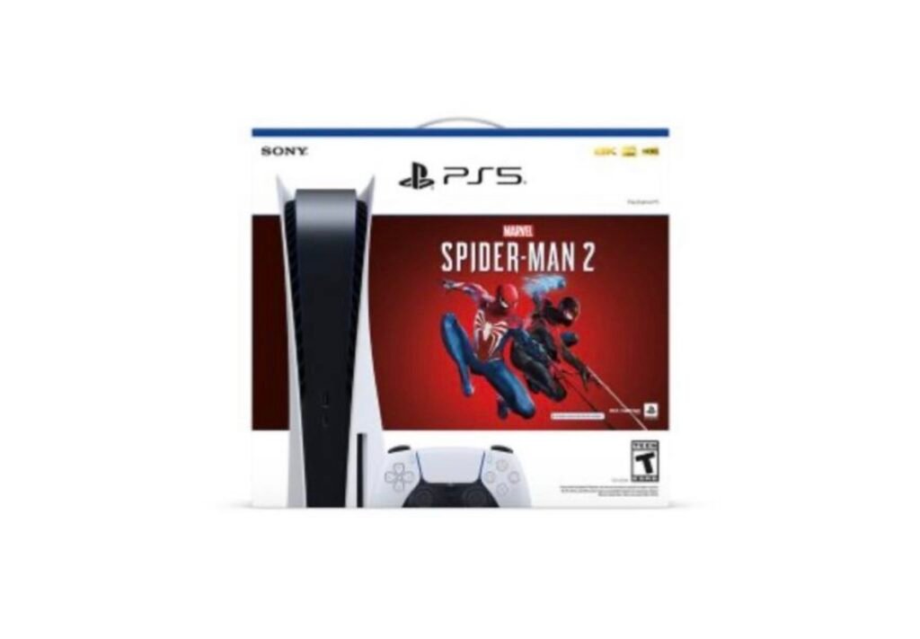 • $359.91 reg $449.99 Sony PlayStation 5 Disc Console – Marvel’s Spider-Man 2 Standard Edition Bundle