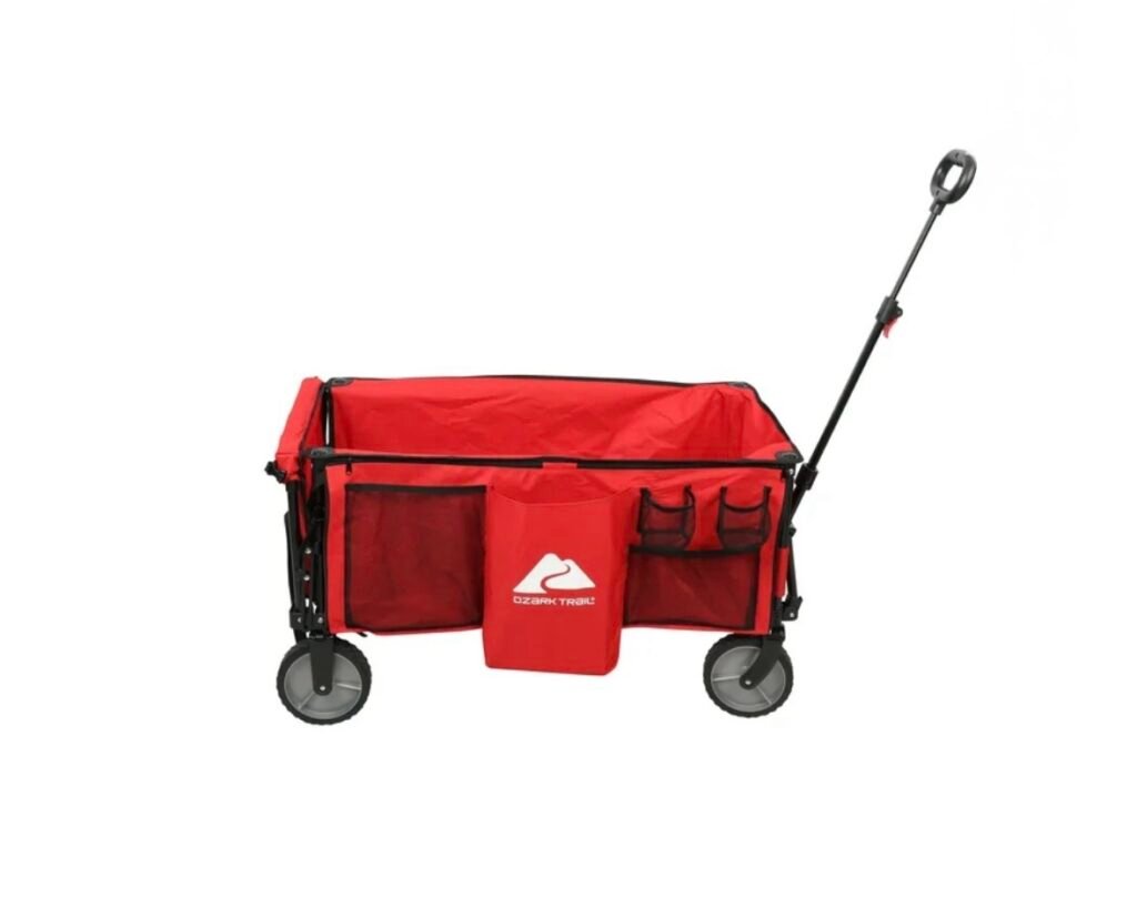 $39 reg $69 Ozark Trail Camping Utility Wagon with Tailgate & Extension Handle, Red, Polyester, 21.6″ Height