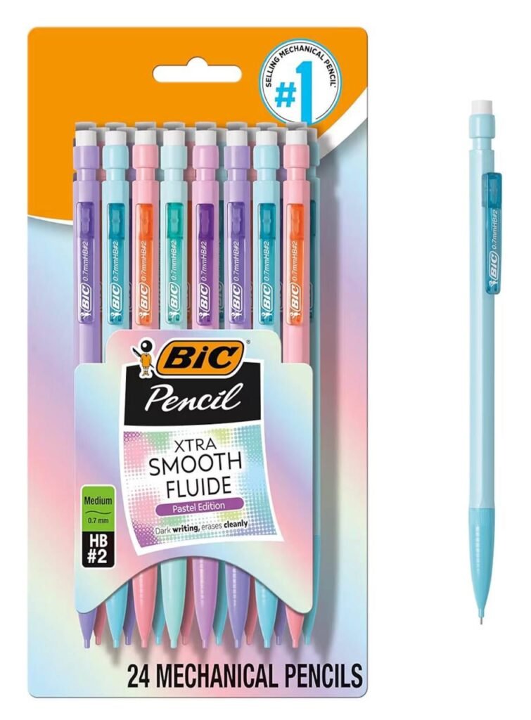 Stock up on essential school or office supplies with the BIC Xtra-Smooth Pastel Mechanical Pencils. This 24-count pack features medium point 0.7mm pencils that write smoothly and provide precise lines for all your writing and drawing needs. Each pencil comes with an eraser for quick corrections, making them ideal for students, professionals, or artists. The pastel-colored barrels add a touch of fun and style to your workspace while keeping your supplies organized. Perfect for classrooms, offices, or home use, these pencils offer quality and convenience at an affordable price.