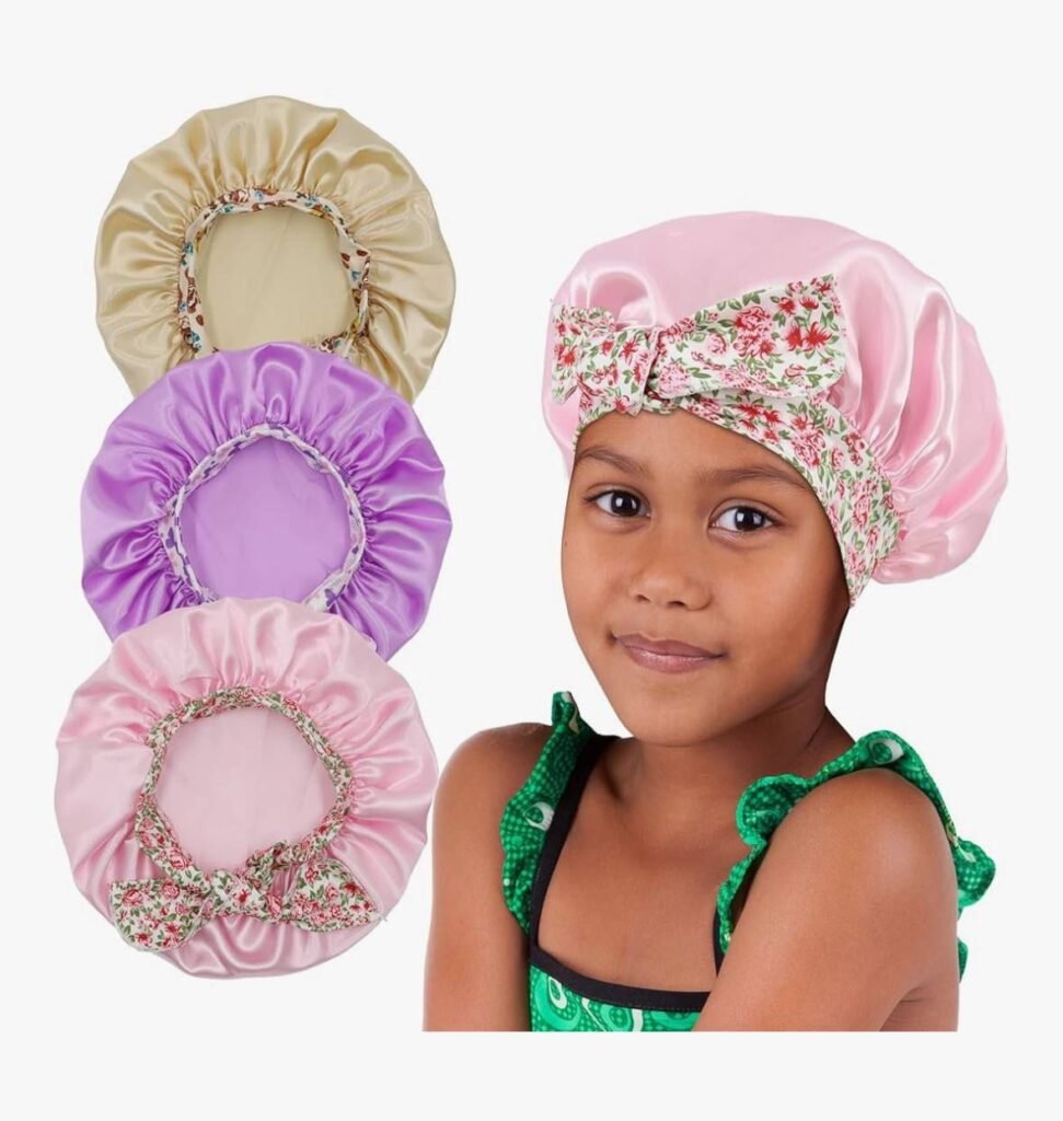 - Includes 3 satin hair bonnets for kids