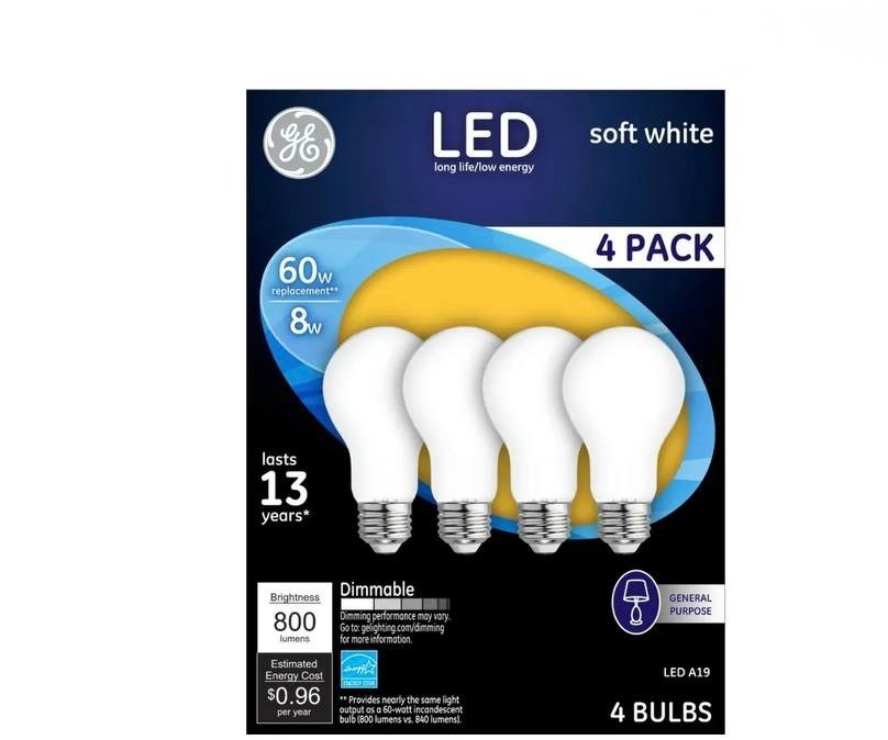 $4.99 General Electric – 800-Lumen, 8W Dimmable A19 LED Light Bulb