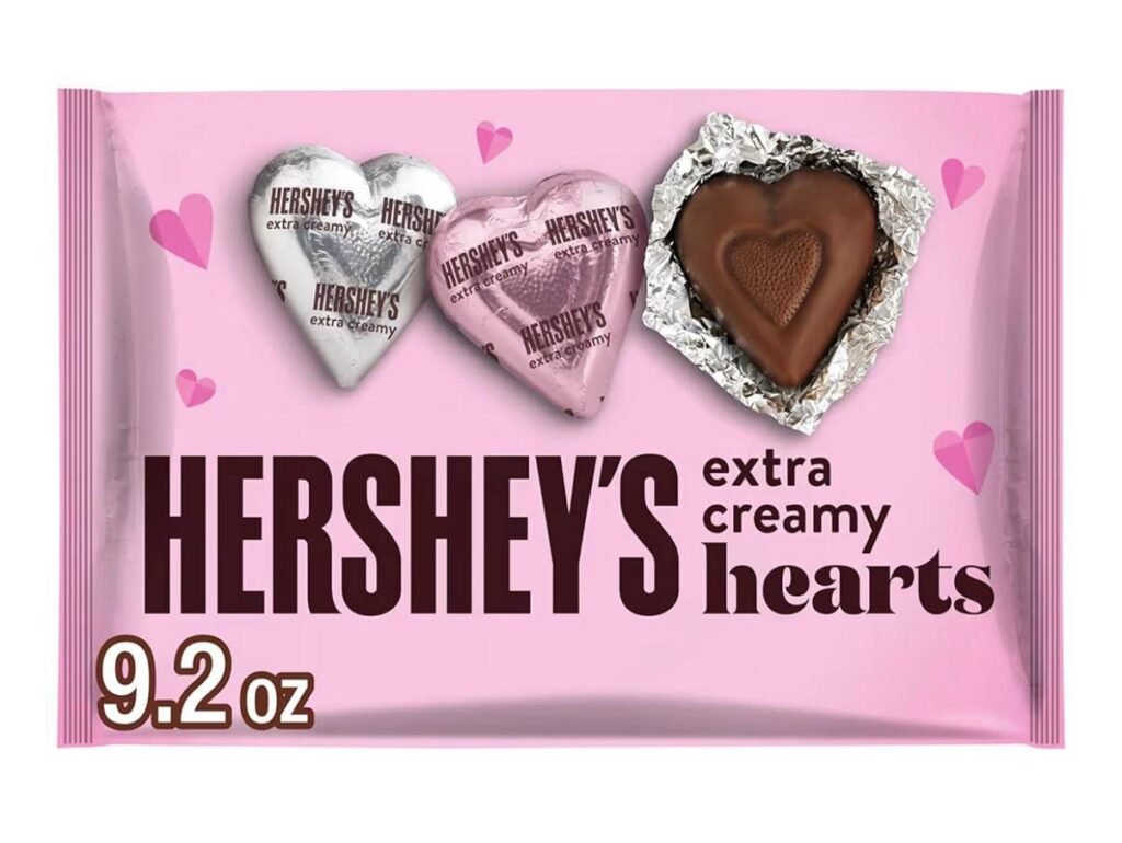 - 9.2 oz bag of HERSHEY’S Milk Chocolate Hearts