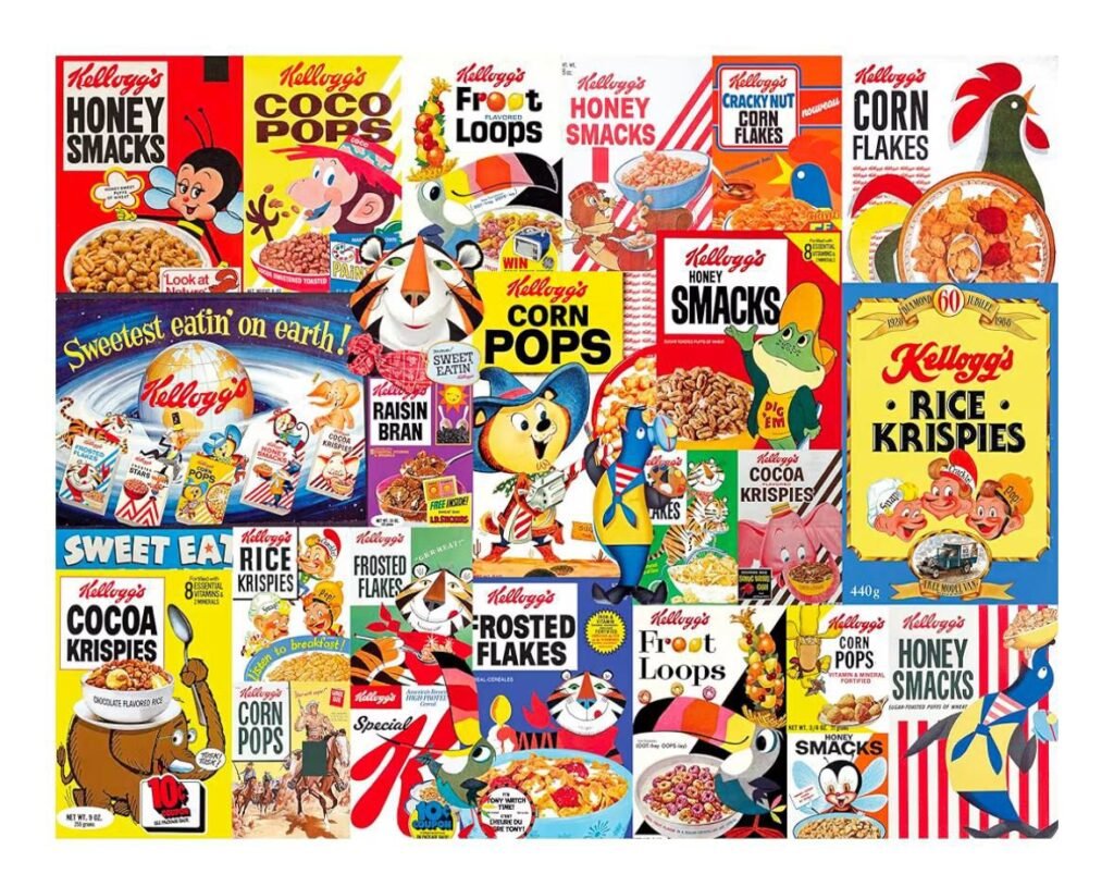 • 1000-piece jigsaw puzzle featuring iconic Kellogg’s cereal designs