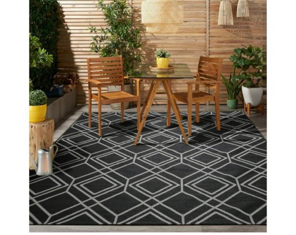 $43! Better Homes & Gardens Grey Diamond Geo Woven Outdoor Rug, 6’x9′
