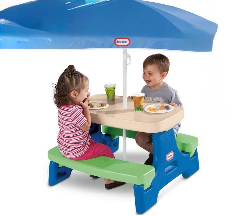 • $49.49 reg $76.99 Little Tikes Outdoor Portable Kids Picnic Table with Umbrella, Blue/Green