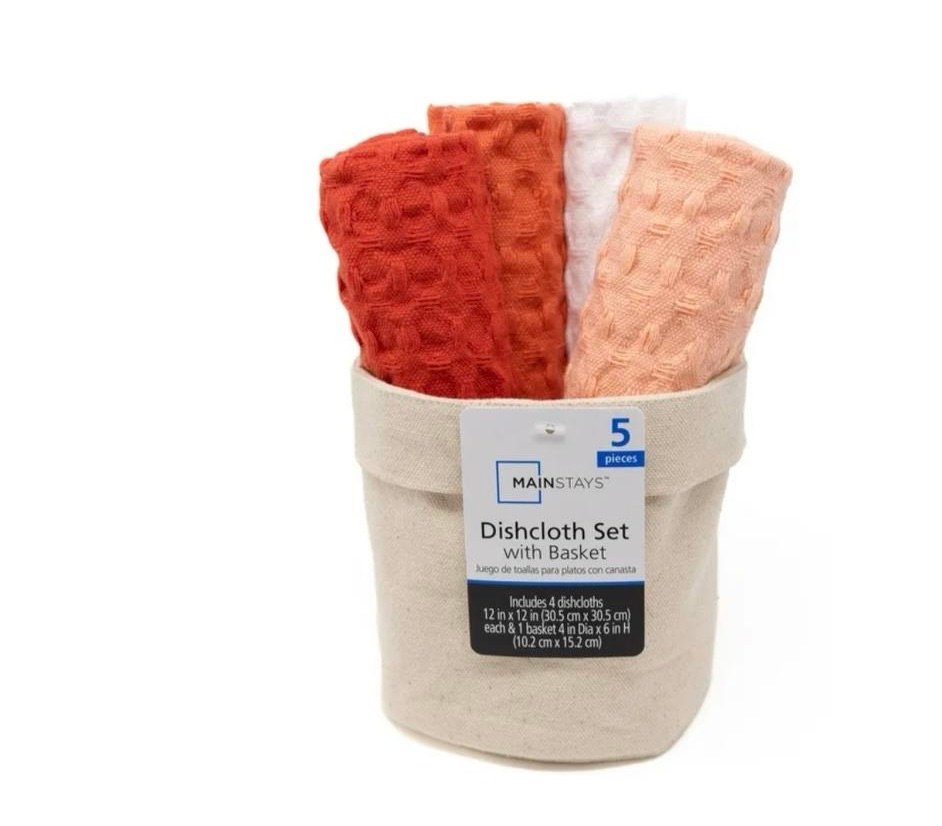 $5 Reg. $10 Mainstays Waffle Dishcloths, 1 Canvas Basket and 4 Dishcloths, Coral Orange
