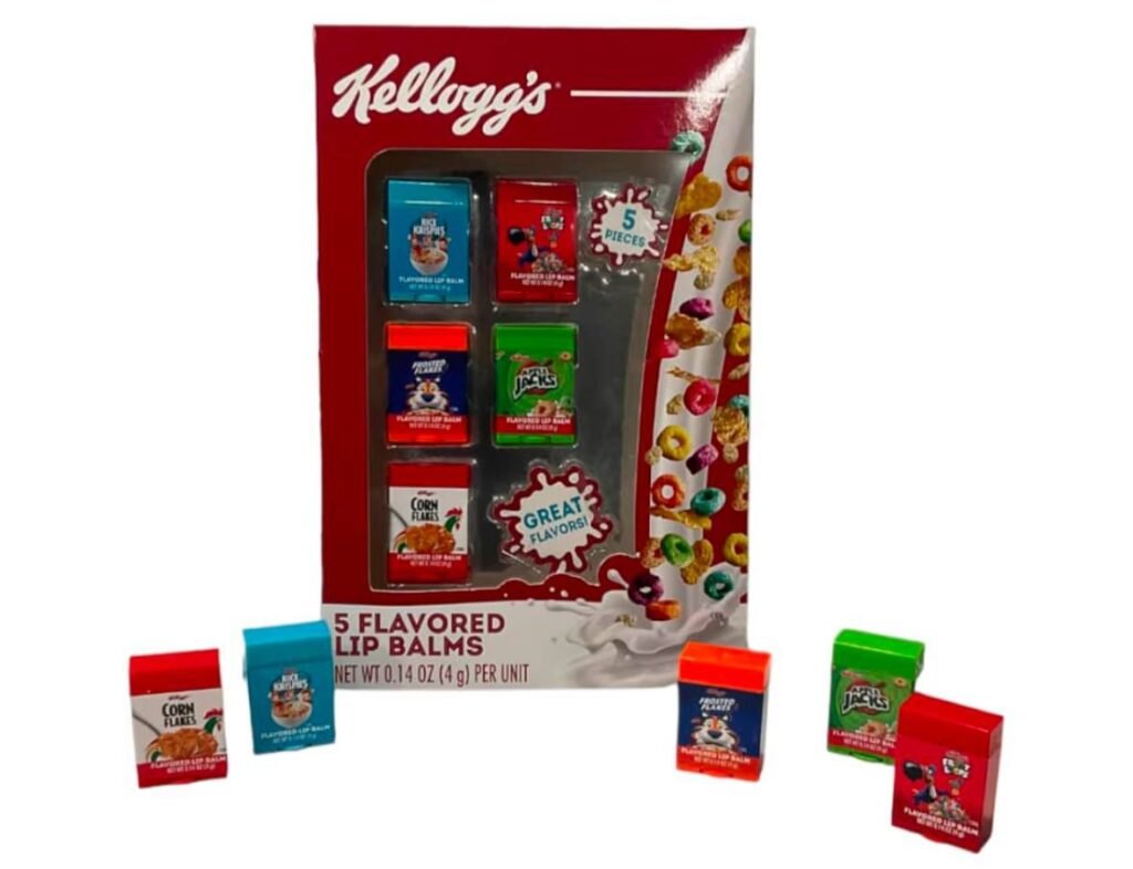 - Includes 5 Kellogg’s cereal–themed lip balms