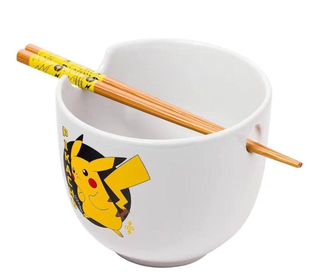 Add a fun and functional touch to your kitchen with this Pokémon Pikachu ceramic bowl. Perfect for ramen, rice, or any favorite meal, this 20-ounce bowl comes with chopsticks and is microwave safe, making it ideal for everyday use.