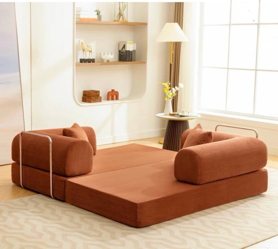 $529.99 reg $629.99 Foldable Three Person Fabric Sofa Bed