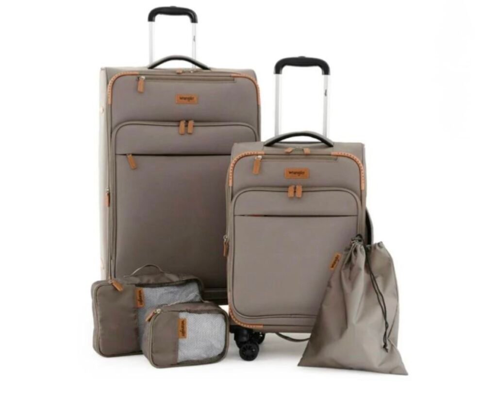 $59 Reg. $98 Wrangler 5-Piece Soft Side Spinner Travel Luggage Set, Khaki