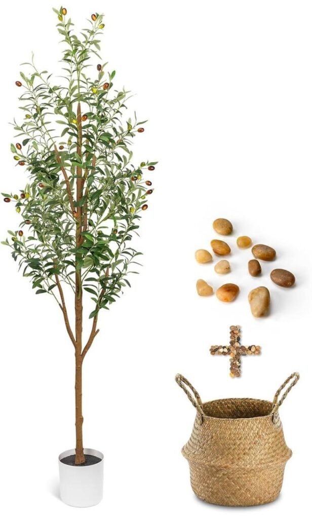 Enhance your home or office décor with this 6-foot Artificial Olive Tree, now just $50.99 (regularly $99.99) at Amazon. This realistic faux olive tree features lifelike branches, leaves, and even miniature fruits for a natural look without the maintenance. Perfect for living rooms, offices, entryways, or any space that could use a touch of greenery, it comes with a stylish planter and basket for an elegant display. Free shipping is available for Amazon Prime members.