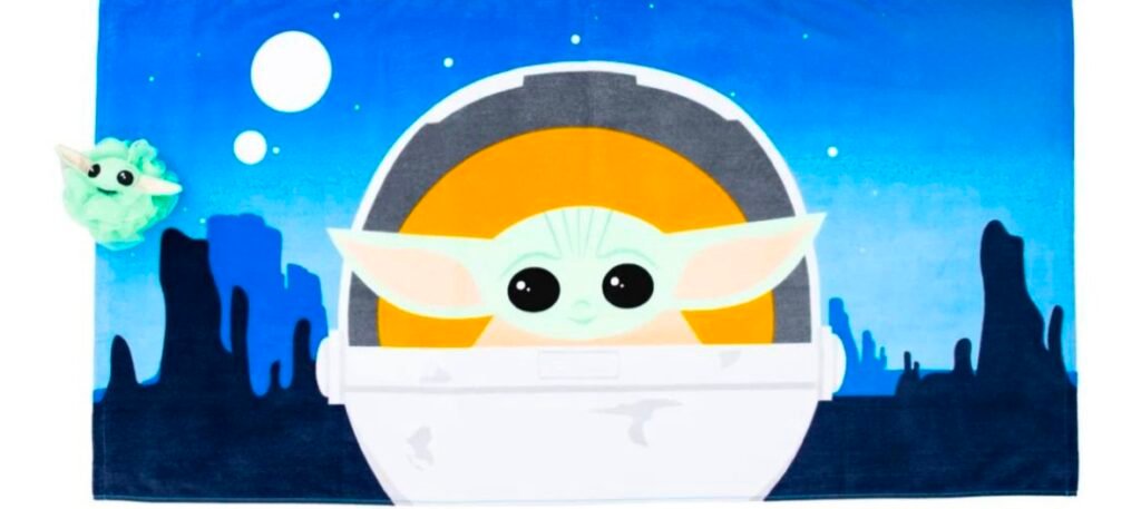 $7.04 reg $22.20 Baby Yoda Oversized Kids 100% Cotton Towel and Character Loofah Set, Green, Star Wars