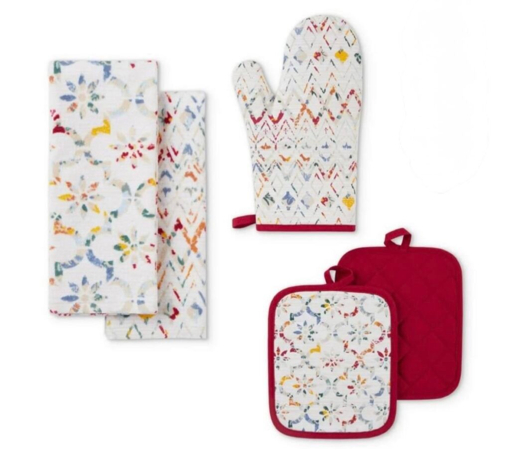 and Oven Mitt Set, Multicolor, 15″W x 25″L, 5 Pieces