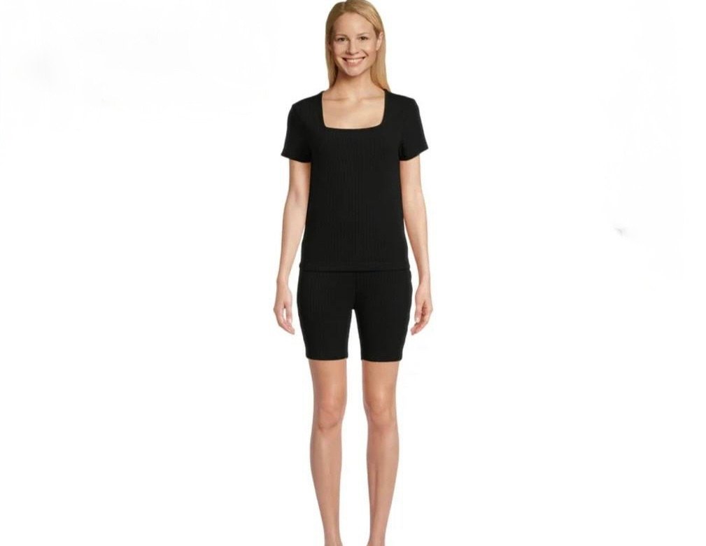 $7 Lissome Women’s Square Neck Hacci Ribbed Tee & Bike Shorts Lounge Set, 2-Piece