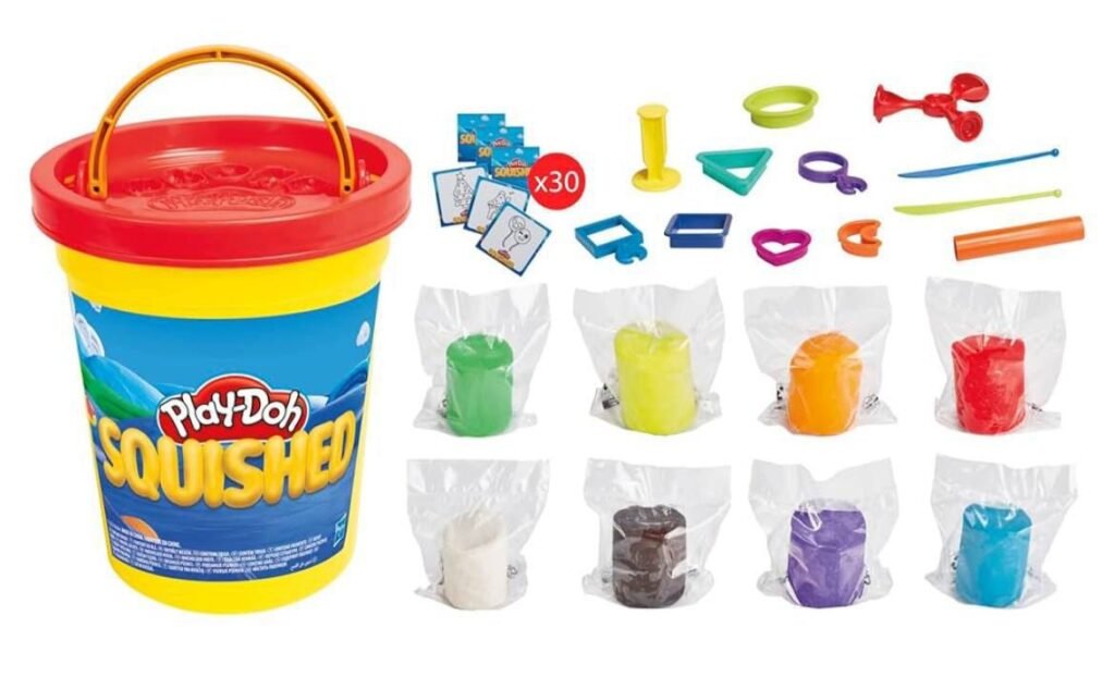 - Includes 4 creative challenges inspired by the Play-Doh Squished TV show