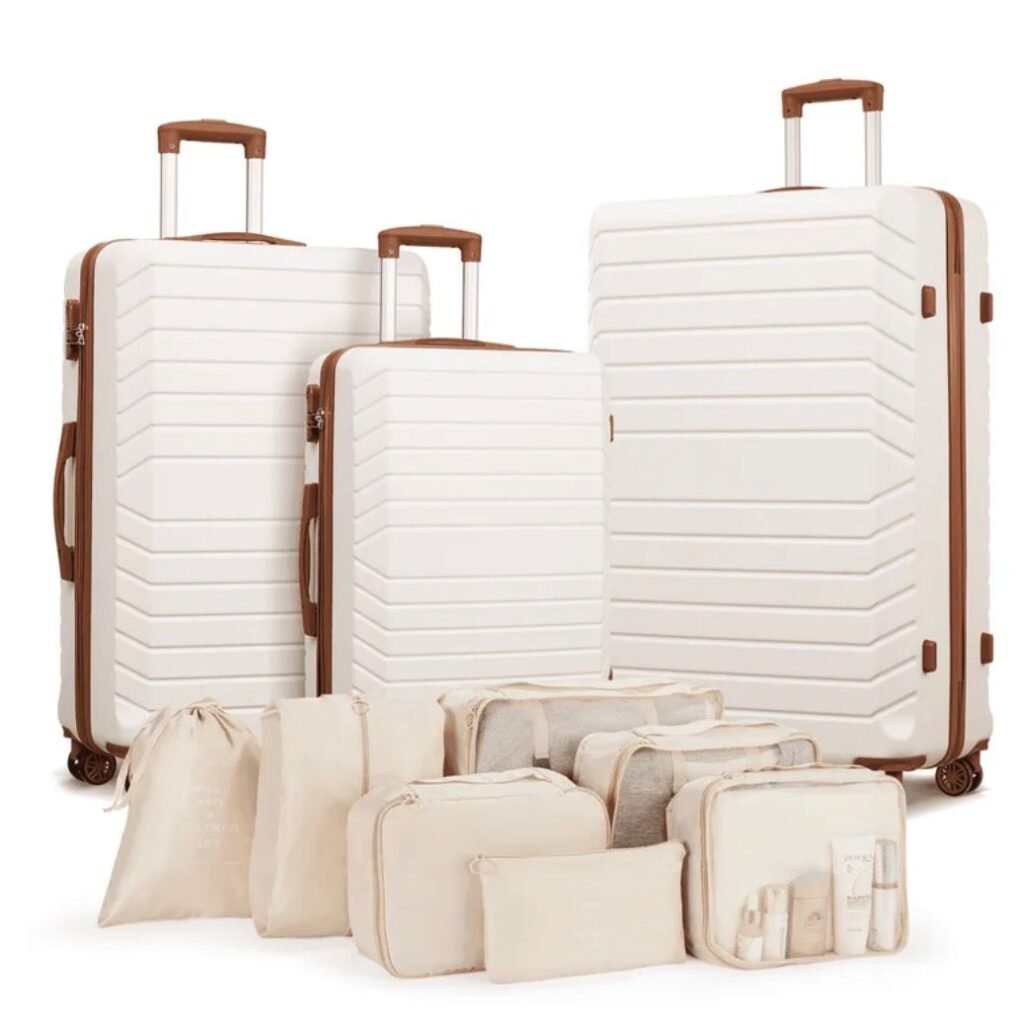 This luggage deal brings you a complete travel-ready bundle featuring three hard-shell suitcases in 20, 24, and 28 inches, plus seven organizer bags for easy packing. The durable build, smooth maneuverability, and lightweight structure make it ideal for weekend trips, long vacations, or business travel. This White Tan colorway delivers a clean, modern look that stands out yet stays elegant for all travel styles.