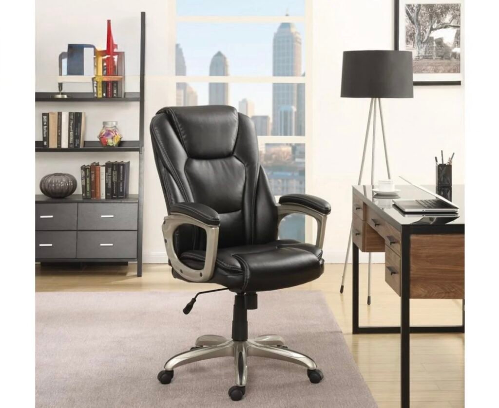 Bonded Leather Commercial Office Chair with Memory Foam, 350 lb capacity, Black