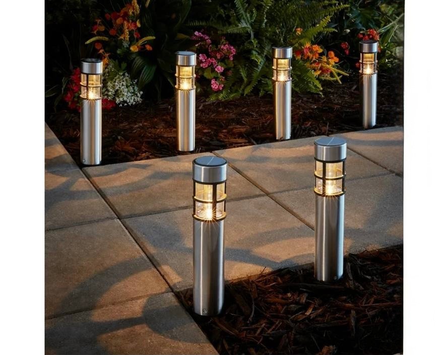 Mainstays Solar Powered Stainless Steel Bollard Landscape Path Light, 10 Lumens (6 Count)