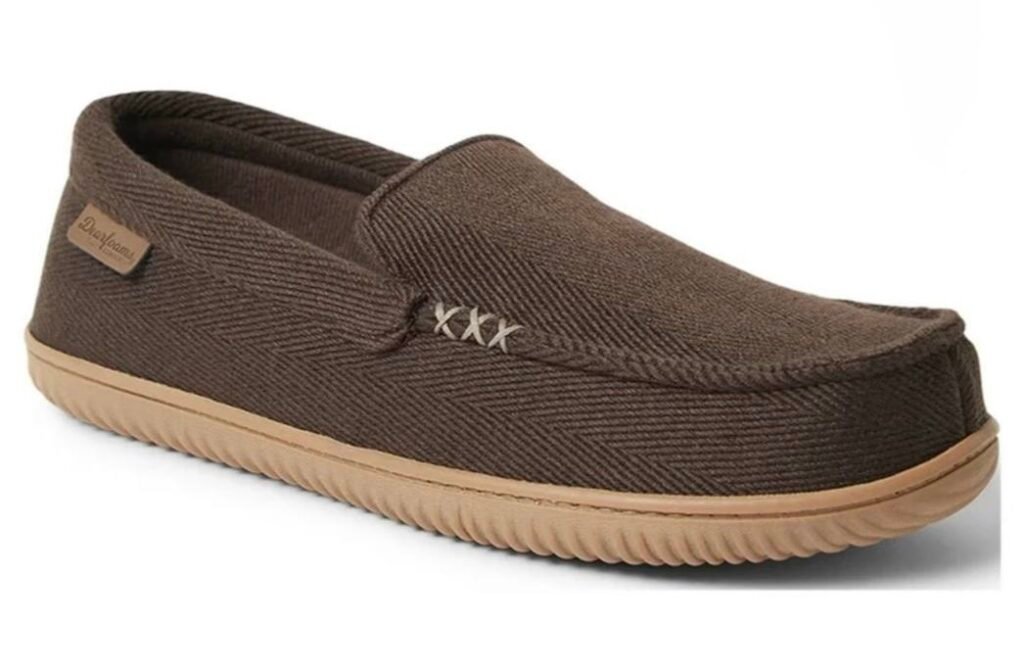$9.99 Dearfoams Cozy Comfort Men’s Herringbone Moccasin Slippers