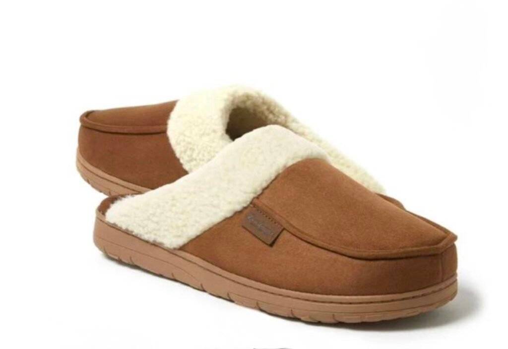 $9.99 Dearfoams Cozy Comfort Men’s Microsuede Moc Toe Scuff Slippers