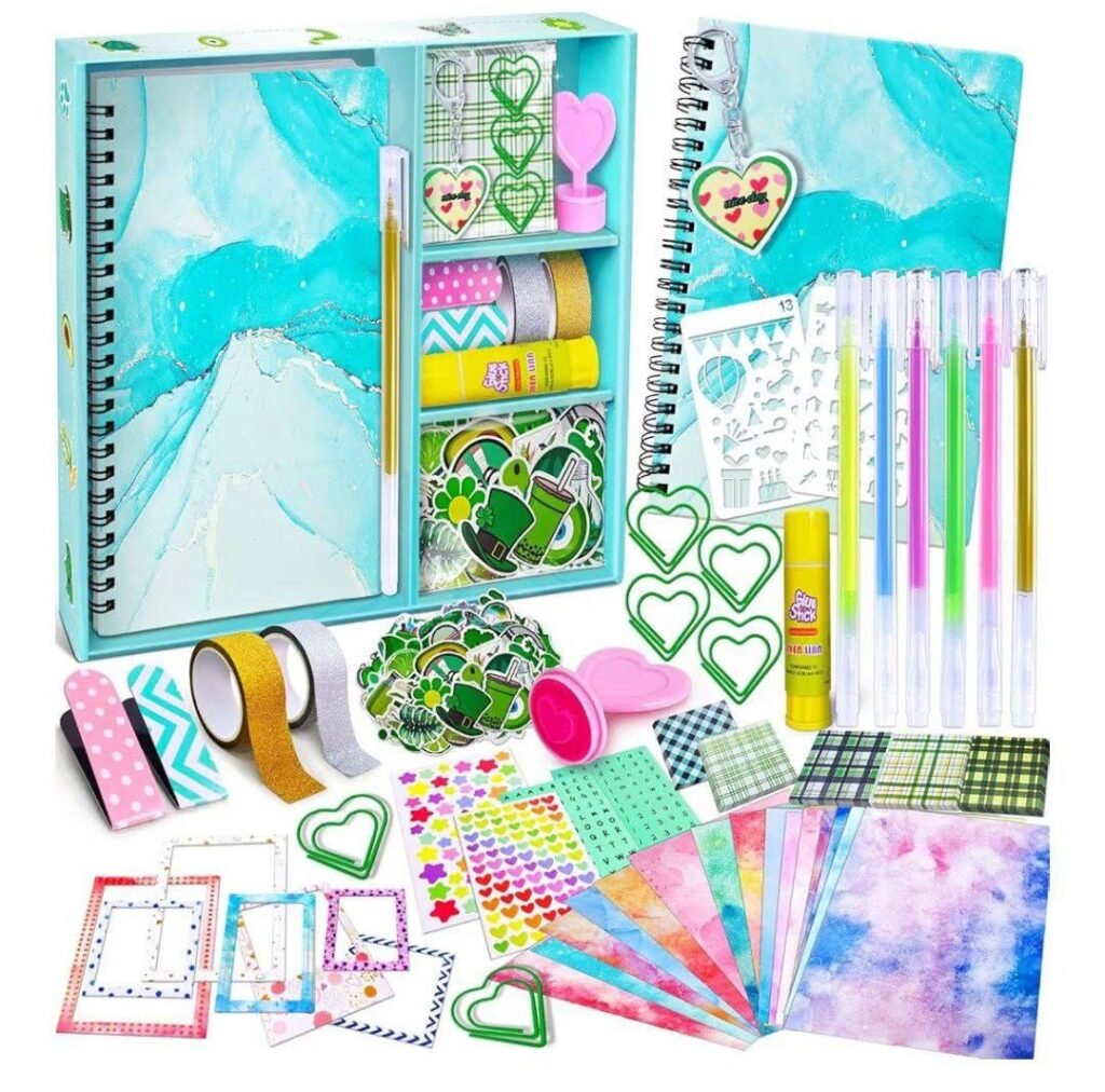 • Complete DIY journaling and scrapbooking kit with assorted accessories