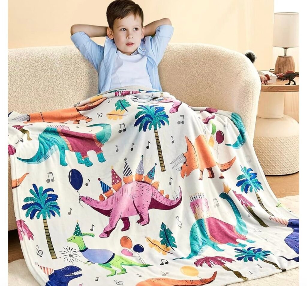 $9.99 reg $19.99 Toddler Fleece Dinosaur Blanket for Boys, Soft Throw Blanket with Dinosaur Print, Birthday Christmas Halloween Dinosaur Decor for Children, 50″x60″