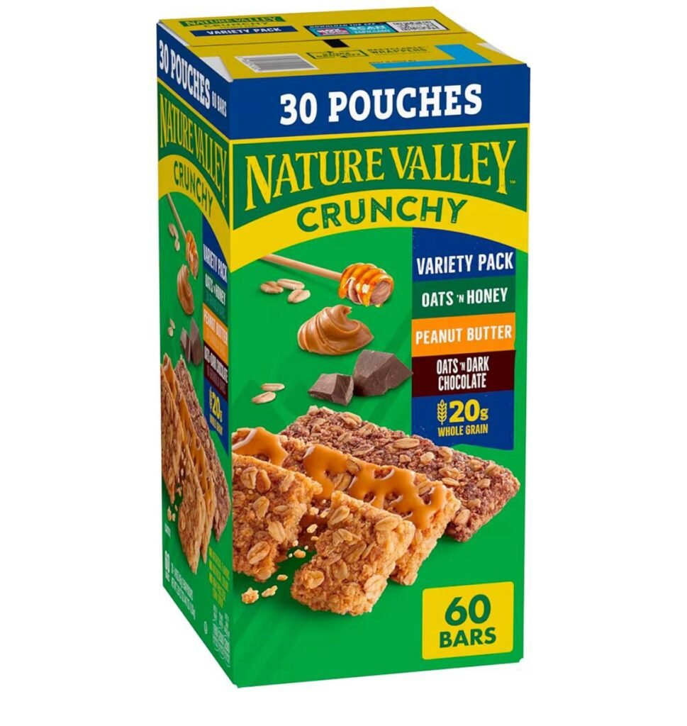 This Nature Valley Crunchy Granola Bars Bulk Variety Pack offers three classic flavors Oats ‘n Honey, Peanut Butter, and Oats ‘n Dark Chocolate making it a great pick for snacking, lunch boxes, and on-the-go energy. With 30 two-bar pouches (60 bars total), this pack delivers both value and convenience at a budget-friendly sale price.