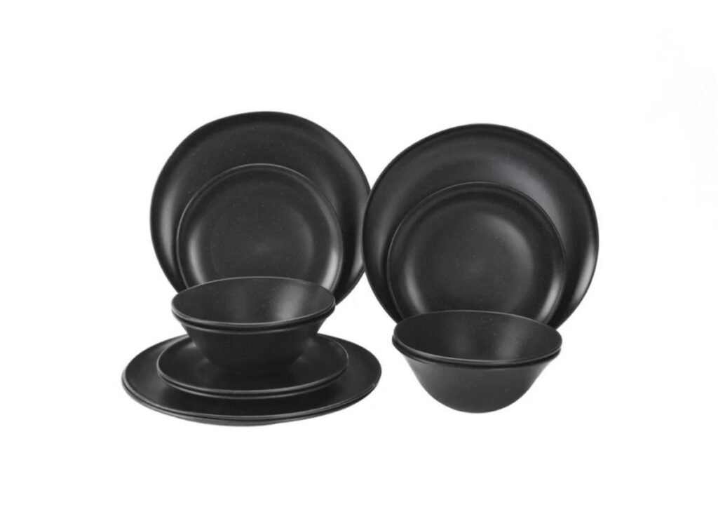 $9 Reg $20 Mainstays 12-Piece Eco-Friendly Dinnerware Set, Black