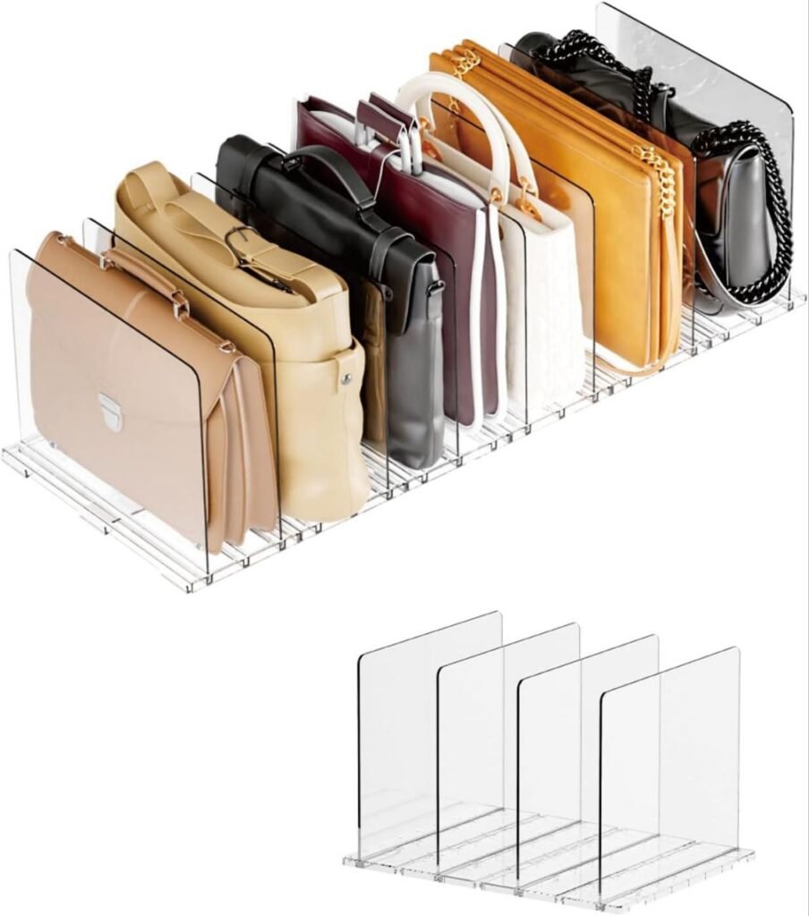 Keep your handbags and accessories neatly organized with this Adjustable Acrylic Purse Divider Organizer. Designed to fit closet shelves, it helps separate and protect purses while making them easy to access. Its clear acrylic design blends seamlessly with any closet décor.