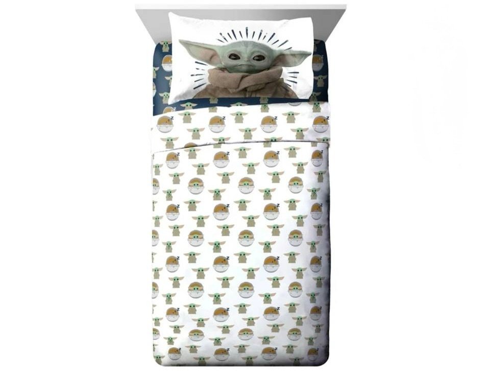 Baby Yoda Powerful Child Kids 4-Piece Full Sheet Set, Microfiber, Blue, Star Wars