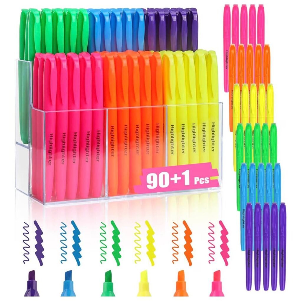 Looking for a budget friendly way to stock up on school or office essentials? This 90 pack highlighter set is available at Amazon for just $9.xx, making it an amazing value for students, teachers, and office use. With a wide range of colors and a convenient holder included, this set is perfect for organizing notes, studying, and creative projects.