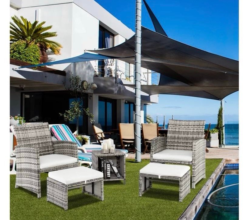 Wicker Conversation Set with Ottoman for Backyard Lawn Garden Porch, Patio Set with Cozey Cushion, Graying Cane