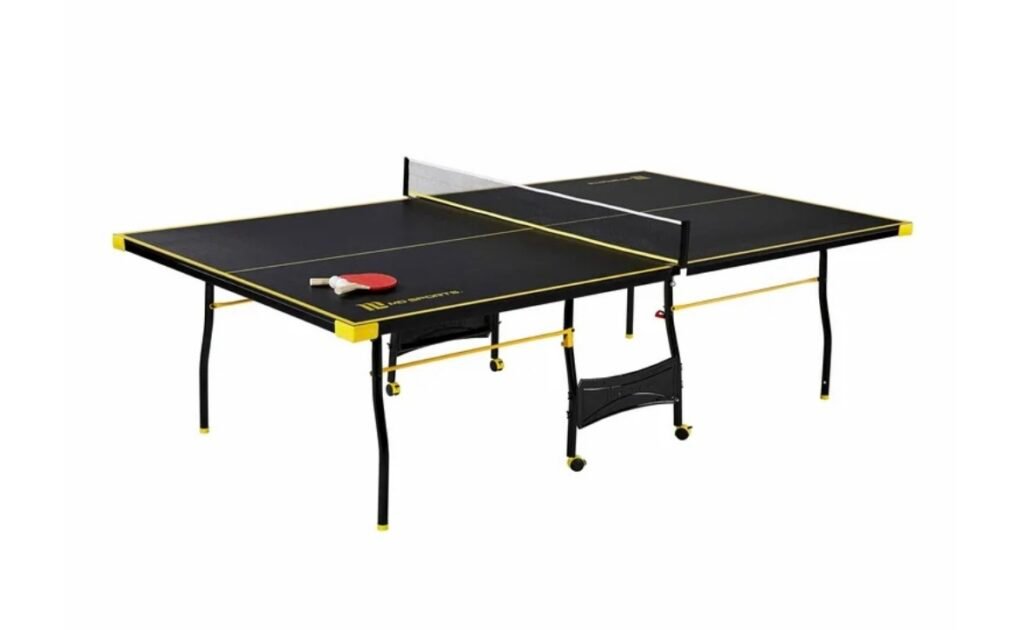 4 Piece Foldable Design with Net, Paddles & Balls – Black/Yellow