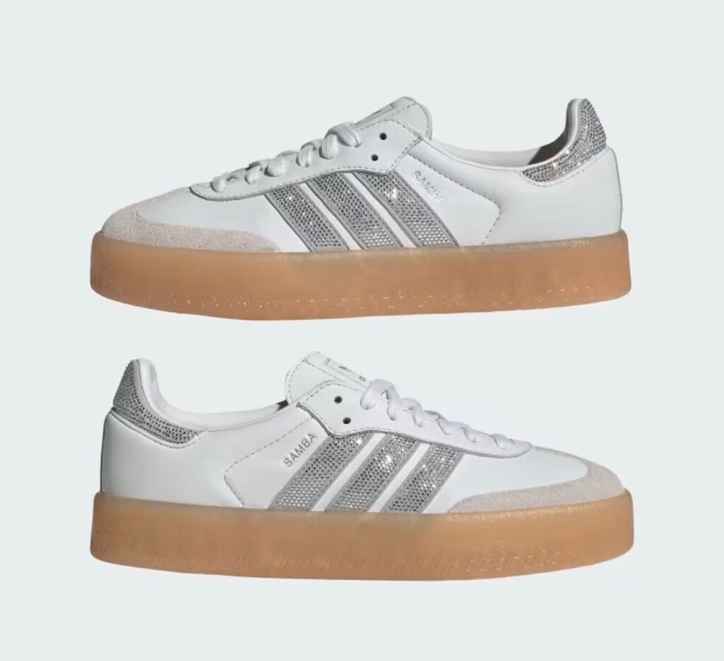 • Features the iconic Adidas Samba silhouette with sparkling accents