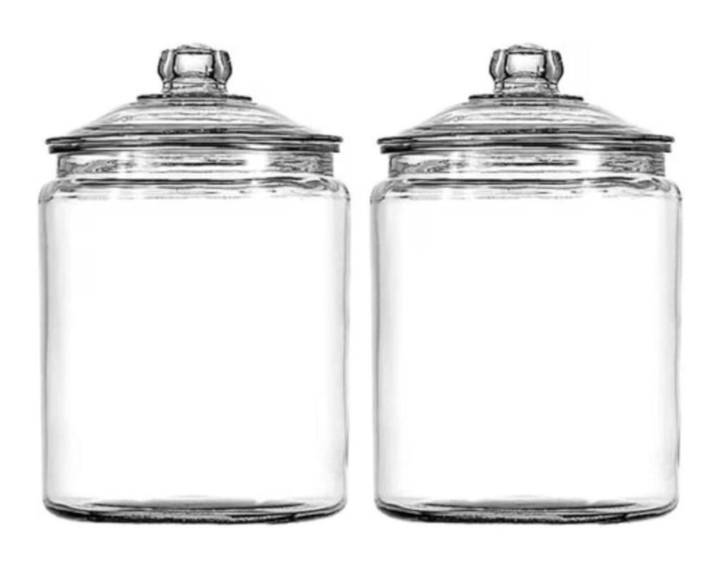 • Includes two 1 gallon clear glass jars with matching glass lids