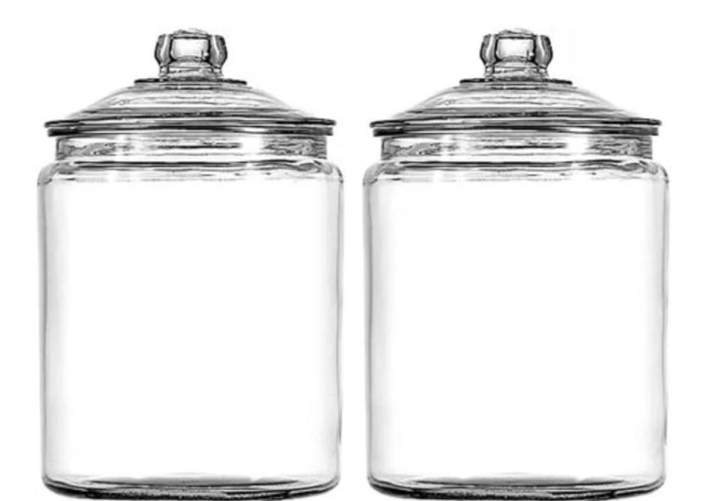 • Set includes two 1 gallon clear glass storage jars