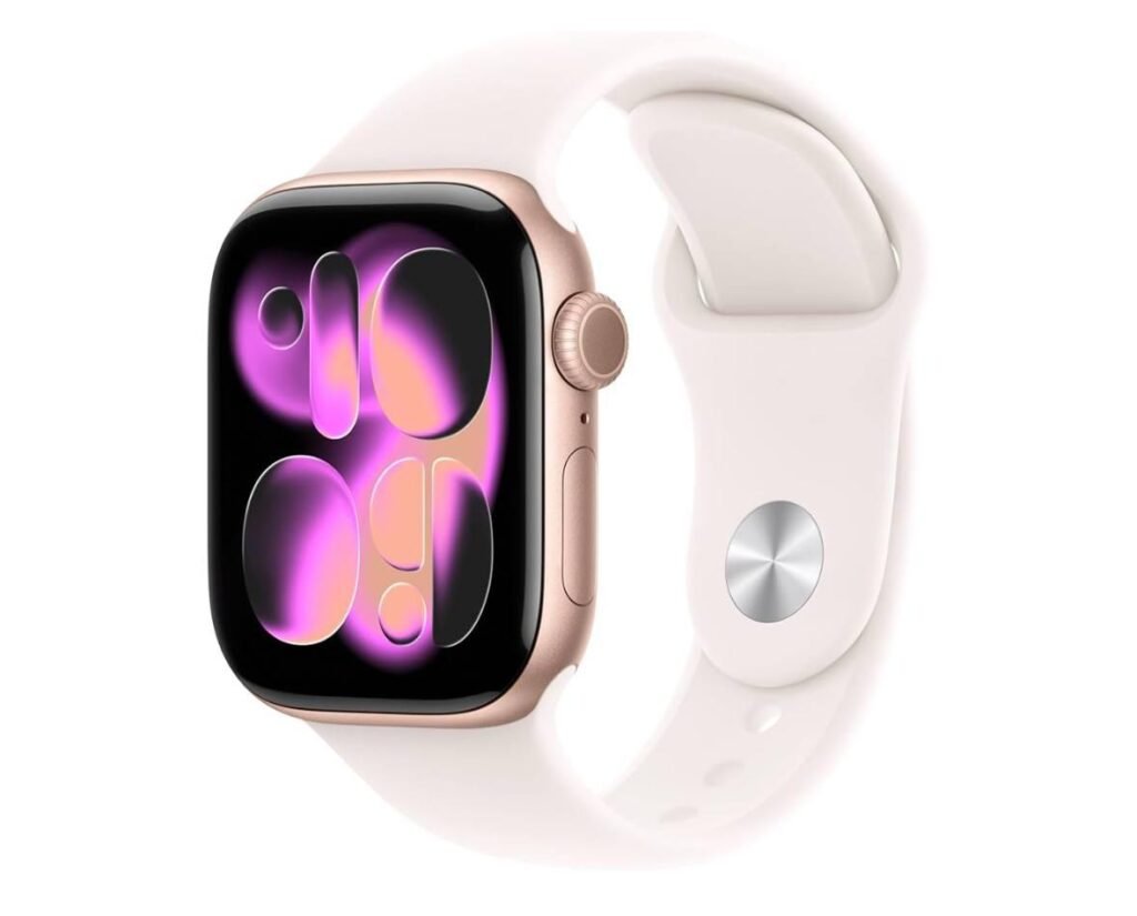 - GPS-enabled Apple Watch Series 11 with a 42mm Rose Gold aluminum case