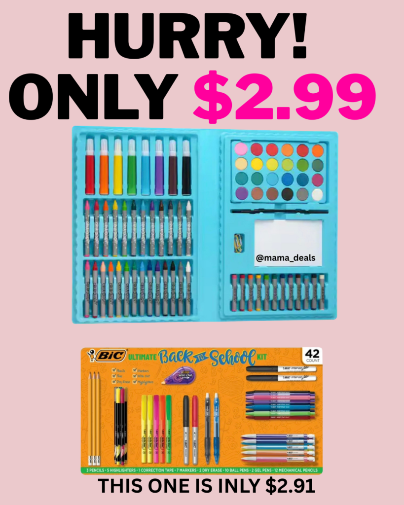 Score two amazing back-to-school deals right now! The 101-Piece Kid’s Art Set by Creatology is marked down to just $2.99 (regularly $7.99) at Michael’s, making it perfect for kids who love drawing, coloring, and crafting at home or school. You can also grab the BIC Ultimate Back-to-School Assorted Essentials Kit, 42-count, for only $2.91 at Sam’s Club, which includes must-have school supplies at an incredible value. Both deals are limited-time offers and prices may vary by location or sell out quickly, so it’s best to grab them while they’re still in stock.