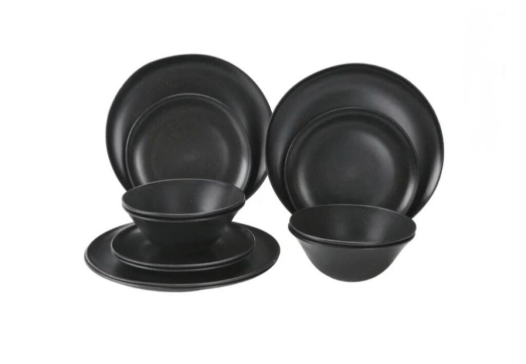 As low as $10! Mainstays 12-Piece Eco-Friendly Dinnerware Set, Black