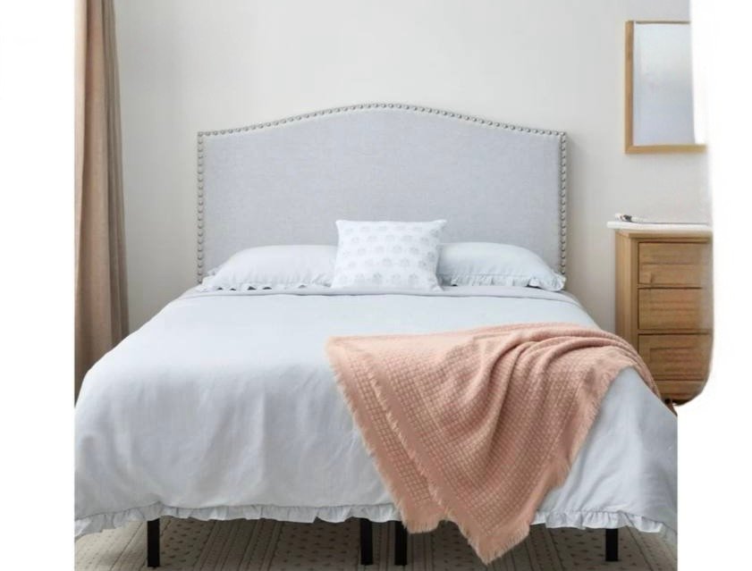 My Texas House Kennedy Nailhead Trim Curved Upholstered Headboard, Light Gray