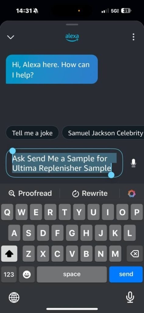 I just typed this into my phone’s Alexa app: