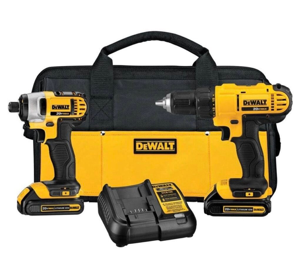 $124 reg $239 DEWALT 20V MAX Cordless Drill and Impact Driver, Power Tool Combo Kit with 2 Batteries and Charger