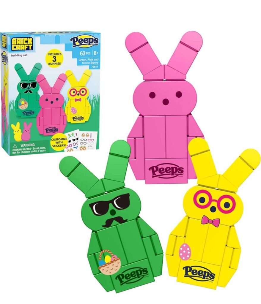 Celebrate spring and Easter fun with the Brickcraft Peeps Bunny Building Set, now just $9.99 at Amazon. This official Peeps licensed set includes three adorable bunny brick figures in pink, yellow, and green that kids and collectors will enjoy building and displaying. With 63 total pieces and festive stickers included, this set makes a great seasonal activity, decoration, or gift idea. Free shipping is available for Amazon Prime members.