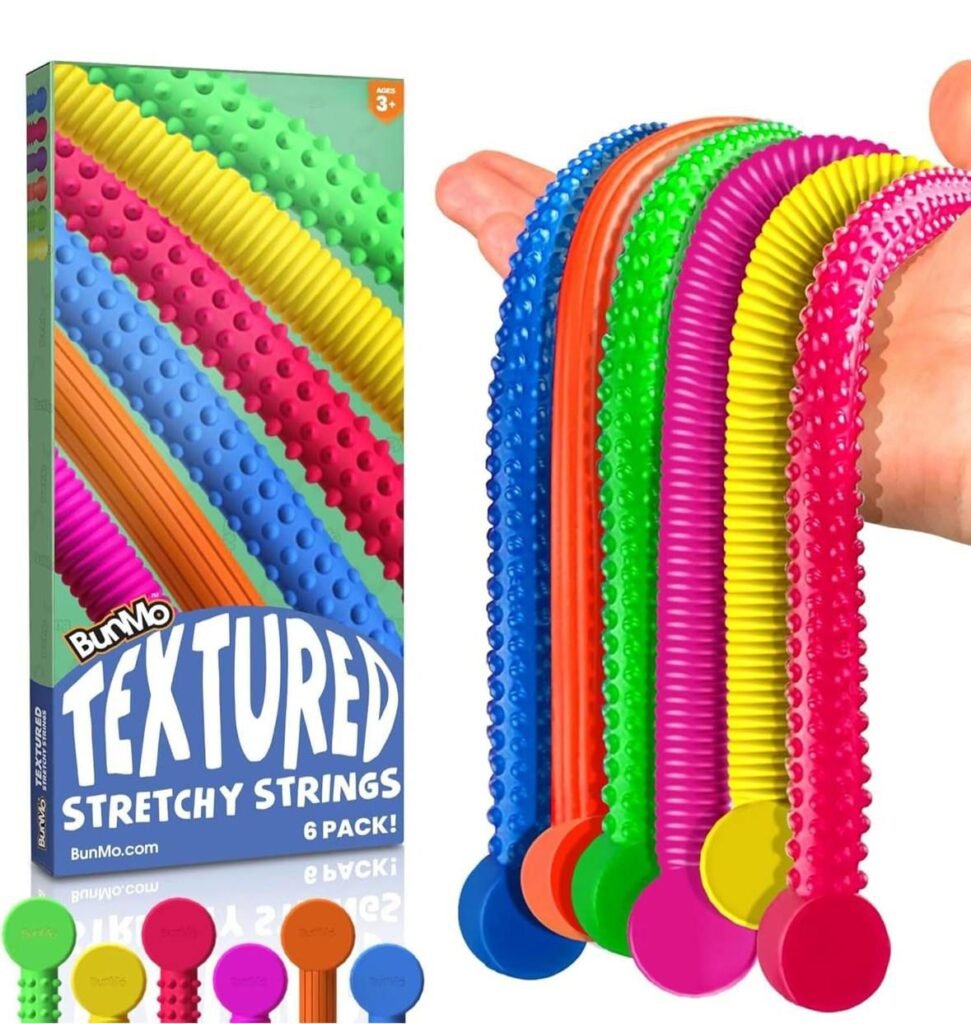 The BUNMO Stretchy Strings Sensory Toy 6-Pack is available at Amazon for about $6.xx, offering hours of fun and tactile stimulation for kids aged 3 and up. These textured stretchy strings are designed as a safe, non?mouthable fidget toy to promote sensory play, stress relief, and fine motor skill development. Perfect for home, school, or travel, this set provides a colorful, engaging, and safe way for children to explore sensory activities.