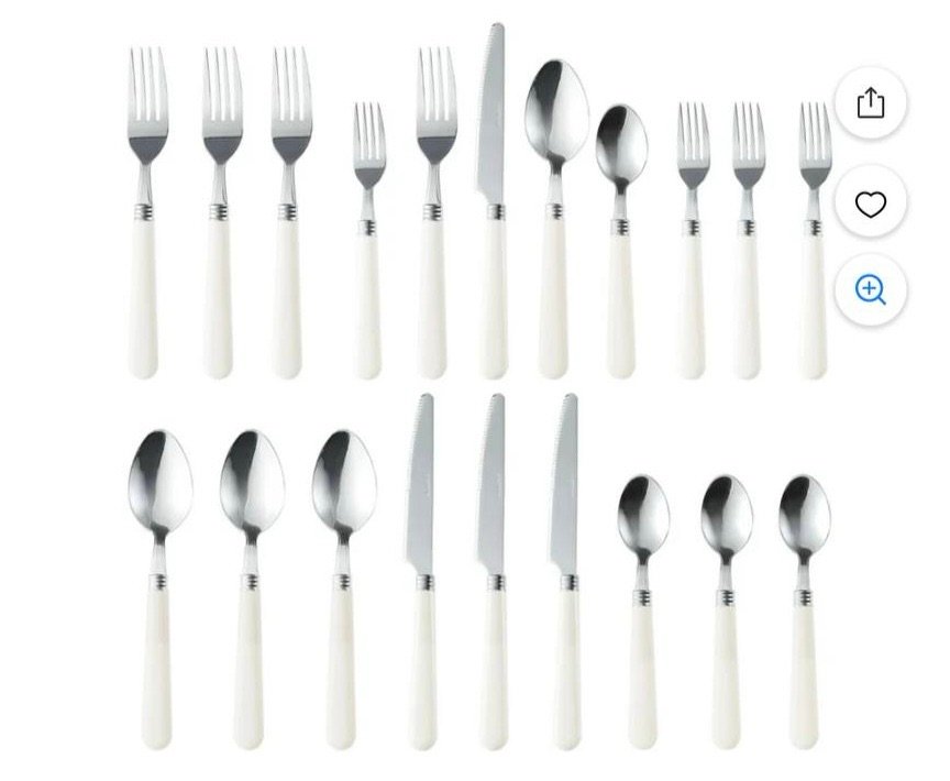 Now $10! Carote 25-Piece Stainless Steel Flatware Set for 6, Silverware Set with White Handle,