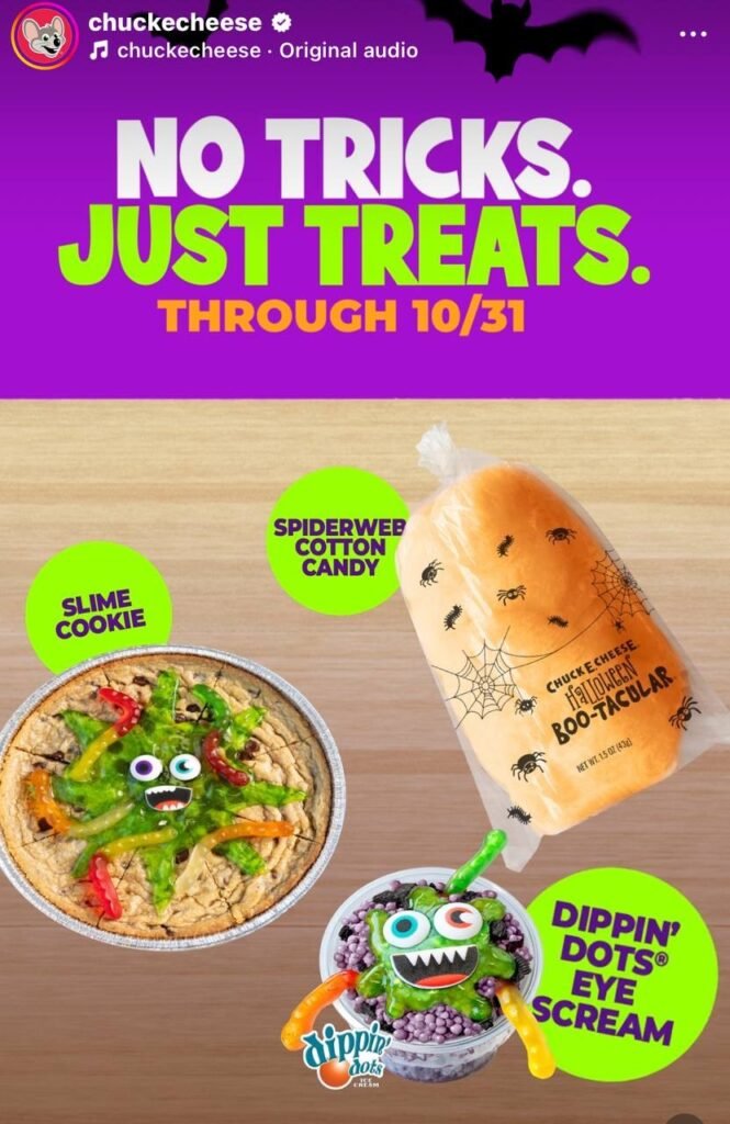 Make this Halloween extra fun by visiting Chuck E. Cheese for spook-tacular desserts that kids will love. Whether it’s the slime-covered cookie or the monster-eye ice cream, these limited-time treats are all about “No Tricks, Just Treats!”