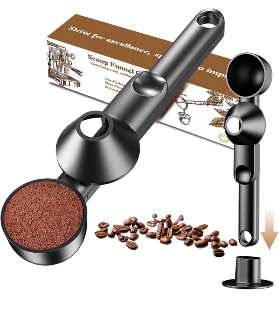 This handy coffee scoop with built?in funnel is available at Amazon for about $7.xx, offering a simple but practical tool for your kitchen. Designed to measure ground coffee, protein powder, tea, or other dry ingredients, the scoop’s funnel shape helps prevent messes and spills while filling reusable K?cup refillers, jars, and containers. Its compact size and user?friendly design make it a handy everyday accessory for your coffee bar or pantry.