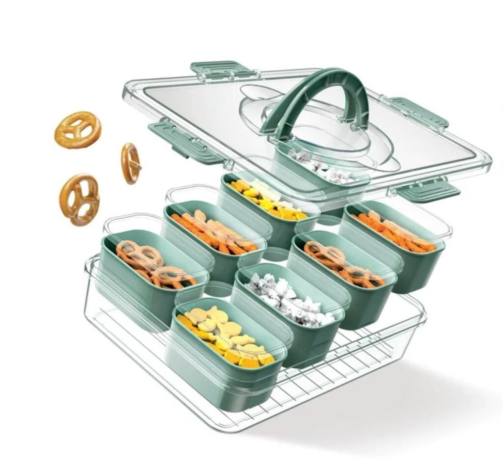 • Features 8 divided compartments to keep snacks organized and separated