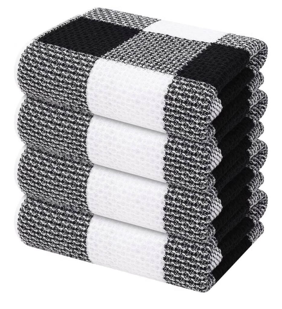 Refresh your kitchen essentials with this stylish 4-pack of 100% cotton waffle weave kitchen towels, now just $9.xx at Amazon. Designed with a classic black and white buffalo check pattern, these towels are soft, highly absorbent, and perfect for everyday use in any kitchen.